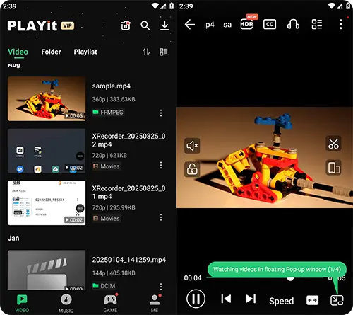 PLAYit是一款支持多种格式的视频播放器及视频编辑工具,适配安卓和iOS双系统,核心聚焦便捷观影与灵活操作需求,提供后台播放、浮动播放、手势控制等实用功能,同时兼容多格式视频与云盘内容播放,适配日常观影场景。
